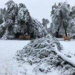 A little late in posting but here are a few pictures from the snow storm. Live oak just can’t take the snow. Lost 20-30 trees and as many BIG limbs. Was without power for 5 1/2 days. About 300 foot of phone line was down in one of the pastures. All the alpacas are ok and other than some fencing and gates, it’s mostly a lot of clean up. So far I’ve had a BIG commercial chipper out twice. It easily takes tree limbs/ trunks with 9 inch diameter. Will have them back next weekend after cutting up more of the downed trees.